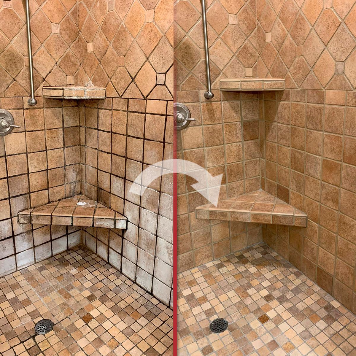 Our team performed a tile and grout cleaning and color sealing process. For the color sealing process, the client selected a color that perfectly matched the tile shower. đ